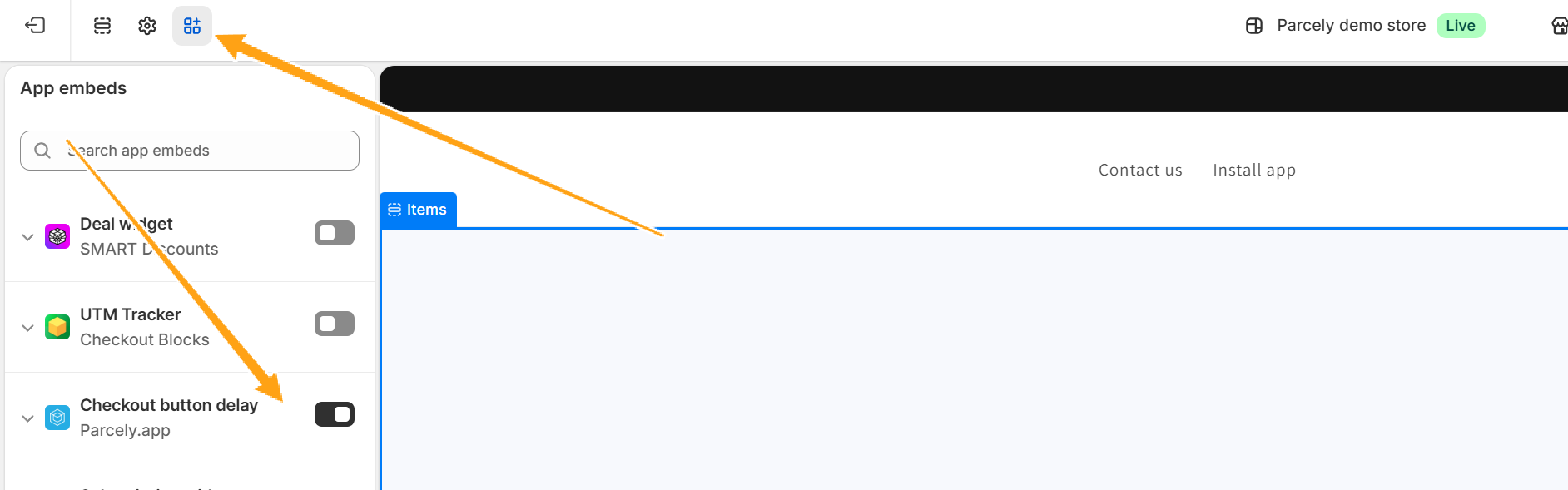 It's hard for us to guide where exactly, because every Shopify theme is a little bit different - Activate Parcely Checkout button delay